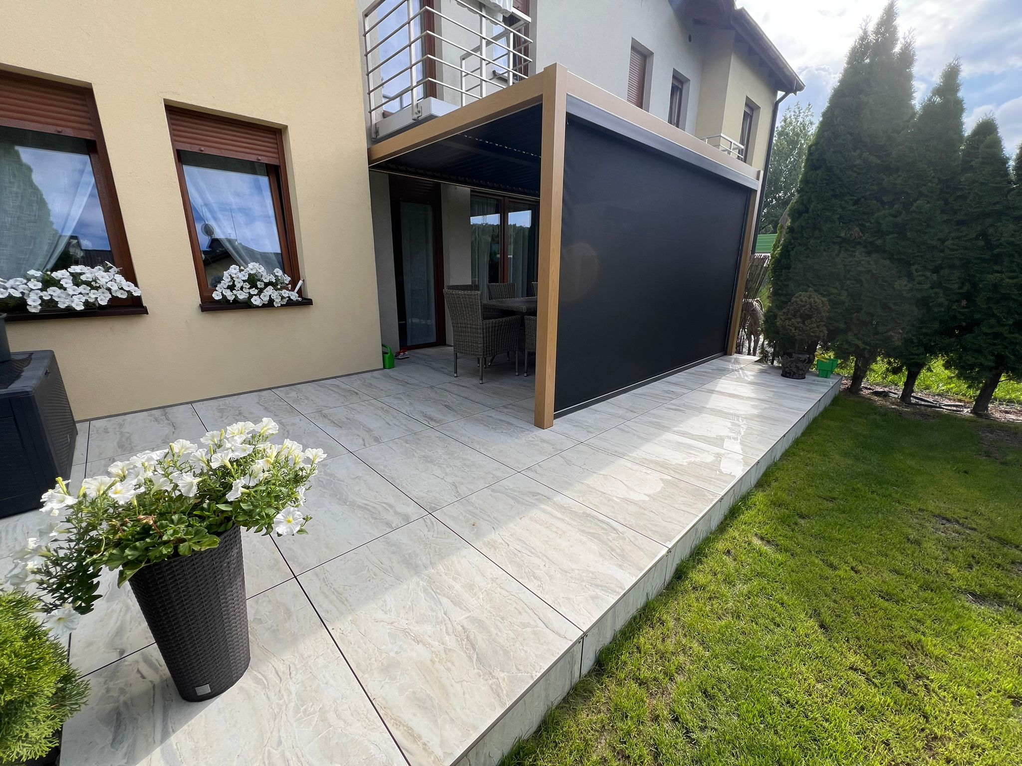 • Taras wentylowany z włoskich płyt gresowych 160×80 cm (system Profilitec)